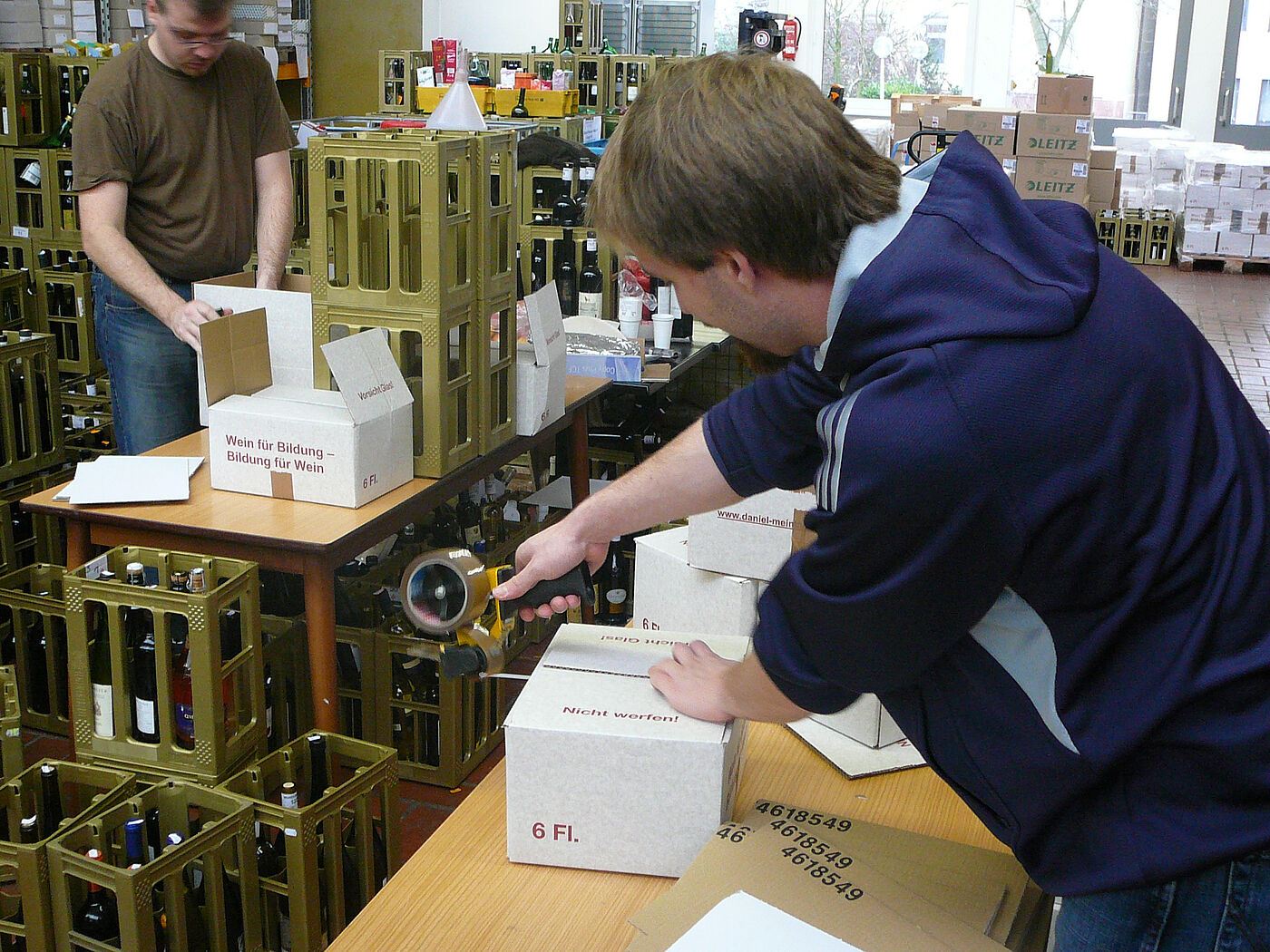 Wiesbadener Kurier, 14.03.2017 „Die Hochschule Geisenheim University startet am Sonntag zum 13. Mal die beliebte Aktion „Wein für Bildung – Bildung für Wein“. Ca. 1000 Kartons mit sechs unterschiedlichen Flaschen Wein des Meiniger-Verlags können Besucher ab 10 Uhr in der Schulgasse ergattern. Schnell sein lohnt sich: Im vergangenen Jahr waren die Kisten nach einer Stunde ausverkauft.“