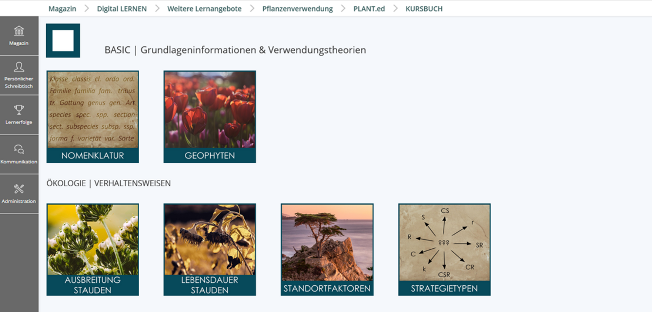 Es handelt sich um ein umfangreiches und interaktives Online-Nachschlagewerk, in dem grundlegendes Wissen digital aufbereitet und optisch ansprechend präsentiert wird. Neben thematisch sortierten und breit gestreuten Ausgangspunkten zur fachspezifischen Online- und Literaturrecherche, unterstütztPLANT.ed als Wissensspeicher Studierende im KURSBUCH mit digitalisierten Vorlesungen und Skripten, die in der Zeit des Studiums an der HGU zugänglich sind.