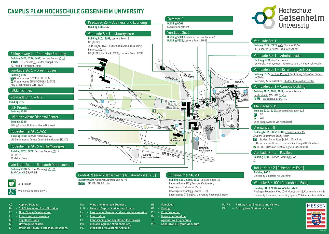 Hochschule Geisenheim University is situated in the Rheingau-Taunus region in the Federal State of Hesse. Frankfurt, a major international metropolis in the Rhine-Main Area, with a major international airport (Flughafen Frankfurt am Main, FRA) is only half an hour away by car. The University Town Geisenheim can be found on the Rhine river, between Wiesbaden and Rüdesheim.
