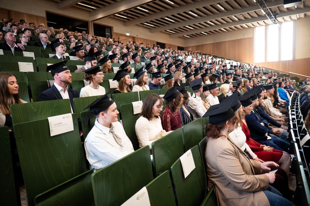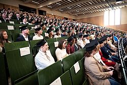 Note: The previously quoted figure of 166 graduates includes all graduates who finished their degree in the period between the 2024 summer semester graduation ceremony (cut-off: July 26, 2024) and this graduation ceremony (cut-off: March 20, 2025). In terms of the allocation to semesters, this corresponds to a total of 29 latecomers from the 2024 summer semester and 137 graduates from the 2024/25 winter semester. The number of graduates will increase slightly by the end of the current winter semester (March 31).