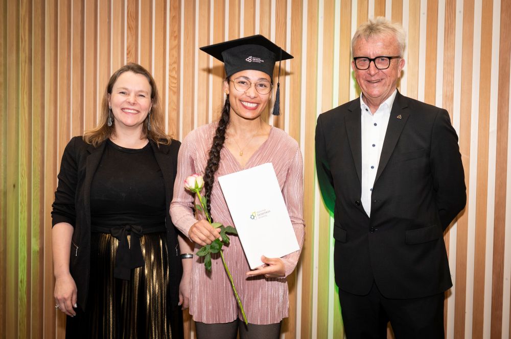 In her welcome speech, Professor Mirjam Hey emphasized the quality of the professional qualifications achieved by the new graduates, as well as their ability to innovate: “With the degree you have attained at Hochschule Geisenheim University, you have gained the specialist knowledge and skills needed to evolve and make an impact as professionals and leaders in the fields of wine, food, horticulture, and landscape architecture, as well as many other sub-sectors. You unite practical skills with innovation, science, and knowledge – a great basis for your continued development. We are wishing you all the best for your future endeavors and are looking forward to staying in contact with you all.”