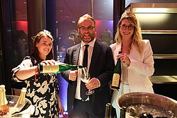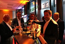 Unsurprisingly, Hochschule Geisenheim University drew considerable interest from Hessenfest's guests, who were warmly welcomed by the cheerful team behind the bar. Several politicians even joined in on the fun, pitching in to help pour drinks and offer reinforcement, turning the university's bar area into a lively hotspot. Among the impromptu bartenders were Minister President Boris Rhein, Science Minister Gremmels, and Agriculture Minister Ingmar Jung, all eager to take part in the action.