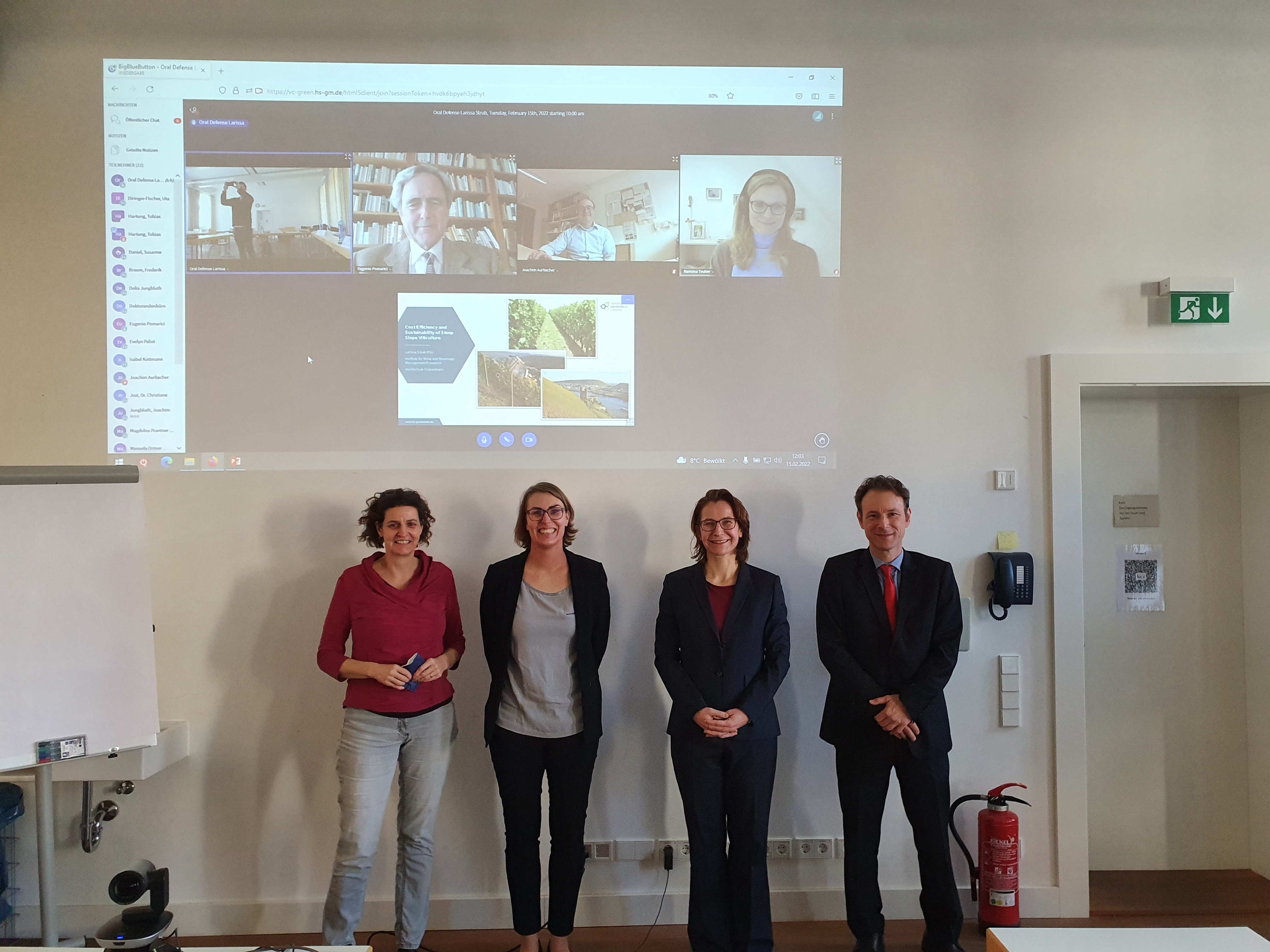 Larissa Strub successfully defended her doctoral thesis titled “Cost Efficiency and Sustainability in Steep Slope Viticulture“ on February 15, 2022 at Hochschule Geisenheim University.
