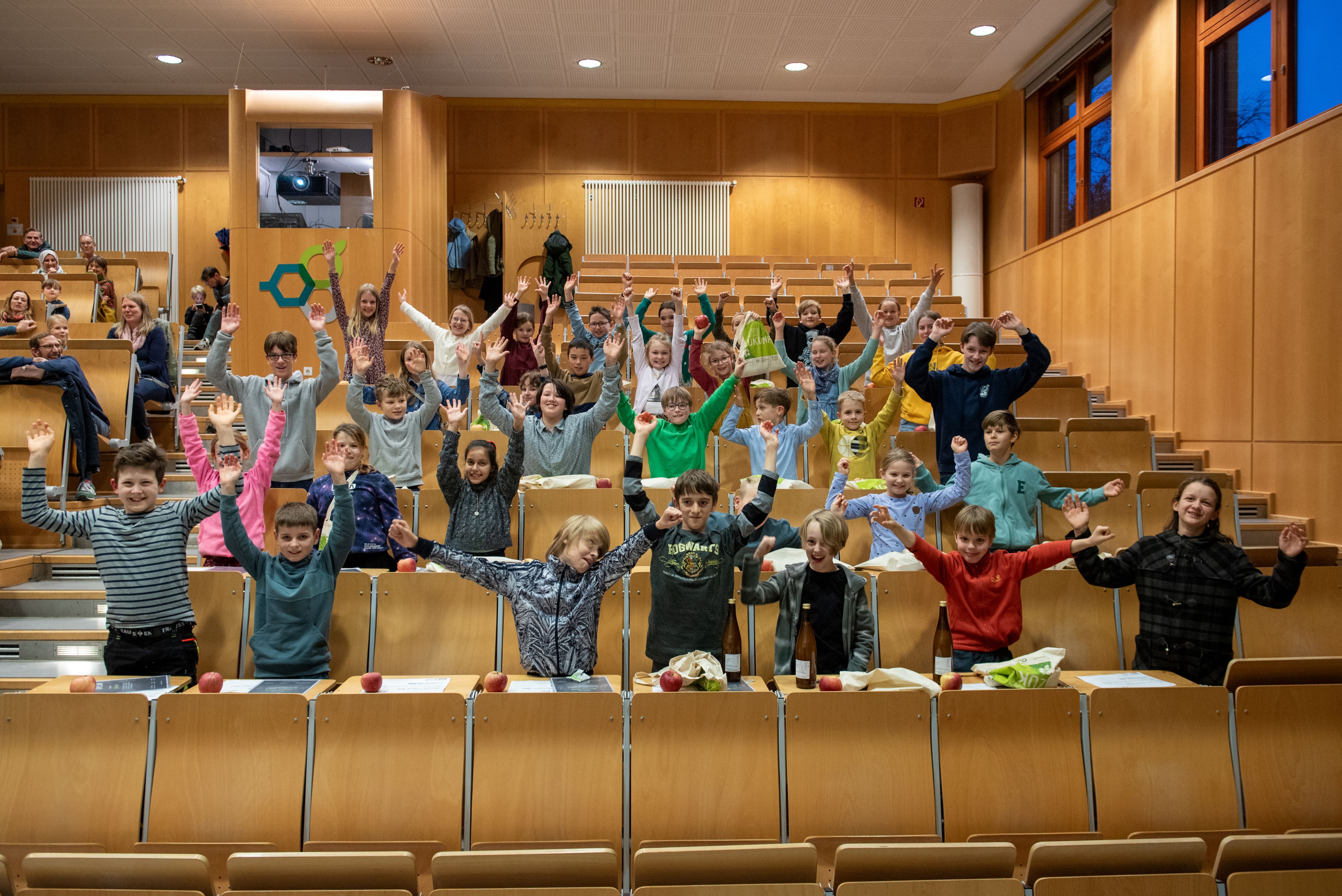 Hard work deserves reward, and so, on December 5, the young graduands and their parents, siblings, and grandparents gathered in the campus building of Hochschule Geisenheim University to celebrate their Kinderuni diplomas in style, complete with apple and grape juice from the university. This event is presumably destined to be the last diploma ceremony to be held in the Gerd-Erbslöh Lecture Hall before the new Lecture Hall Building opens its doors.
