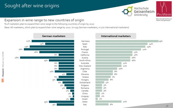Two-thirds of international marketers attending ProWein wish to include wines from new countries of origin in their product range. Among German marketers the figure is only one third. Amongst other things this is because the wine range in Germany is already extremely international.