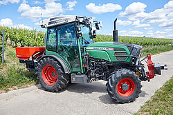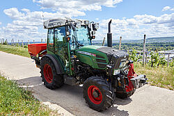 “A tractor equipped with a sensor measures the reflection of the leaves and uses this information to determine the condition of the plant. The information is passed on digitally to the fertilizer spreader that adjusts the amount of fertilizer. Stressed plants will be given more fertilizer while vigorous vines receive a lower dose,” explains Dr. Friedel who tested this new procedure with his team in May 2022 in the vineyards of the Hessian State Wineries of Kloster Eberbach. The team was supported by the sensor manufacturer Fritzmeier Umwelttechnik as well as Rauch GmbH, one of the leading manufacturers of precision fertilizer spreaders.