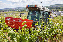 Applying just the right amount of resources is an important factor to increase the economic and ecological sustainability of agricultural production. As part of the DIWAKOPTER project funded by the Federal Ministry of Food and Agriculture (BMEL), Geisenheim scientists are exploring the potential of sensor-controlled precision fertilizing in viticulture in collaboration with Rauch GmbH and Fritzmeier Umwelttechnik. The field trials – the first ones in German-speaking countries – are carried out in the vineyards of the Hessian State Wineries Kloster Eberbach.