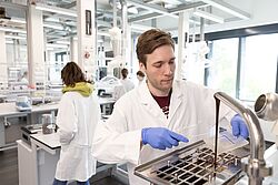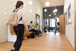 The Food Safety Building has two large laboratories dedicated to microbiology and food technology and analysis. Up to 20 students can be taught at one time in each of the bright, spacious rooms. The lecture halls on the second floor are equipped with the latest technology and can even be combined to form one large lecture hall when needed. There are also various lounge areas for students on the same floor. The basement level has additional space for storage, changing, and technology rooms. More information on the Food Safety degree programs is available via the following links: Food Safety (Bachelor), Food Safety (Bachelor - cooperative work-study program), Food Safety (Master)