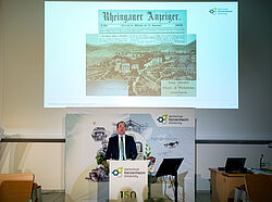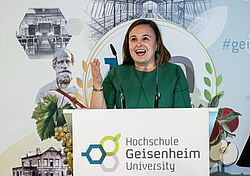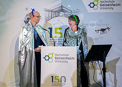 Oliver Mathias, who is in charge of the city and university archives, took a little trip down memory lane and provided interesting facts and entertaining anecdotes about the history of the university. In contrast, Prof. Dr. Annette Reineke, Vice-President of Research, and Prof. Dr. Alexander von Birgelen, Vice-President of Academic and Student Affairs, took a look into the future of teaching and research in Geisenheim. In this context, living labs will play a key role in which Geisenheim scientist operate in a real-life environment to develop strategies and tools in an industry-centered approach.