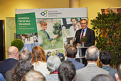 Frank Kilian, District Administrator of the Rheingau-Taunus district, and Christian Assmann, Mayor of Geisenheim, expressed similar sentiments in their speeches. Kilian called the University a "unique treasure", in that it develops and communicates sustainable strategies at the cutting edge of teaching and research. "Society as a whole stands to gain from the knowledge acquired here," he continued. Assmann said he was "proud" of the University's progress and noted that the region itself is also set to benefit from it, for instance, through the recent establishment of the Rheingau Start-up Center.