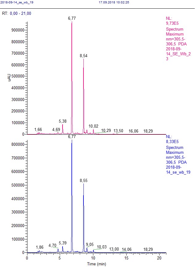 In the course of this research project, an ultra-high performance liquid chromatography system interfaced with a high resolution QTOF coupled ion mobility mass spectrometer has been installed. Main tasks of the new system are the comprehensive characterization of technologically, nutritionally, and regulatorily relevant plant compounds, residues and contaminants in plant materials, foods and beverages as well as by-products of the food and agricultural industry.
