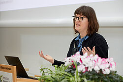 Professor Rieke Hansen, who holds Hochschule Geisenheim University's first tenure-track professorship for open space and ecological urban design, kicked things off with her lecture entitled, "Welcome to the Anthropocene - open space design in an era of major acceleration". Given that cities account for a mere two percent of the earth's surface, but 55 percent of the world's population, a number of issues have to be radically questioned and it is essential to understand what a complex system a city actually is. In this context, she addressed the major challenges involved in finding solutions: "where do we do what and at whose expense do we do it, so that we can not only live in a safe, but also fair world?" She aims to demonstrate possibilities for a new urban design culture and also to become involved at regional level in order to play a part in the sustainable development of cities, because "open spaces are as equally important as our transport system."