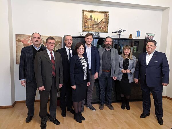 Dr. Martin Reiss und Dr. Jörn Schultheiss from the Center of Excellence, Cultivated Landscapes (KULT) met colleagues from the Viacheslav Chornovil Institute of Sustainable Development at Lviv's Polytechnic National University on February 11, 2020. Both institutions are not only united by the fact that they regard interdisciplinary strategies as the basis for sustainable landscape development, their subject areas are also very similar and mutually complementary, for instance in the fields of environmental protection and nature conservation, environmental teaching and digitalization. This could be taken as a basis for future cooperation and also facilitates extending already existing links to other universities in Ukraine.
