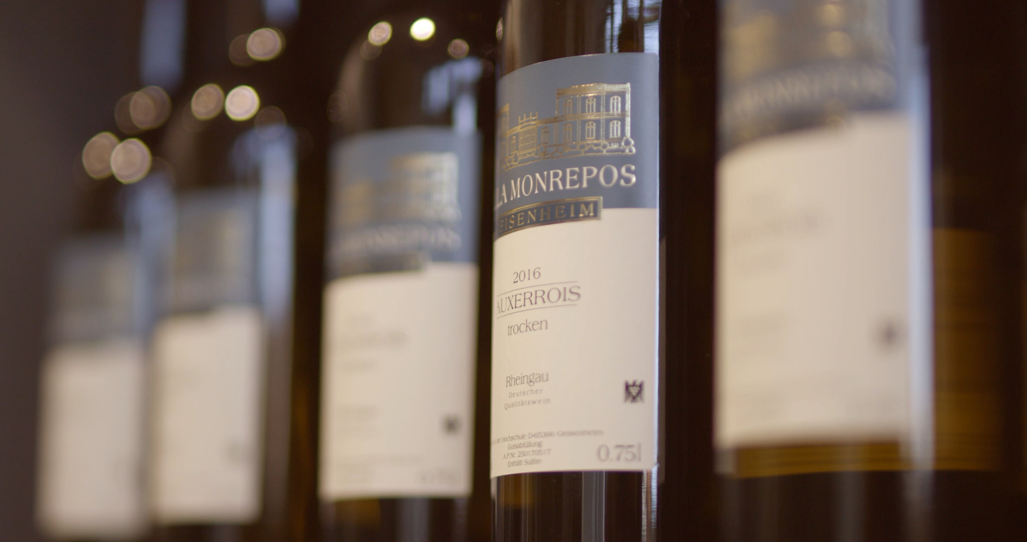 Weinflaschen mit dem Etikett des Weinguts der Hochschule Geisenheim. © Hochschule Geisenheim
