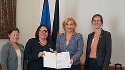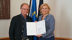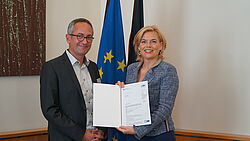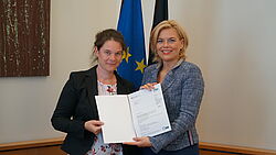 "We are quite proud that VitiFIT has been successfully launched together with such a large consortium", said Beate Berkelmann-Löhnertz, project coordinator and Professor at Hochschule Geisenheim University (HGU). Aside from HGU, Weincampus Neustadt, Friedrich-Alexander-Universität Erlangen-Nürnberg, Julius Kühn-Institut Siebeldingen, and the rural area service centers (DLR) for the Rheinhessen-Nahe-Hunsrück and Rheinpfalz regions are participating in the project. Weinbauinstitut Freiburg and the Bavarian State Institute for Viticulture and Horticulture (Bayerische Landesanstalt für Wein- und Gartenbau) in Veitshöchheim round off the state-run institutions involved in VitiFIT. Given their close ties to the agricultural industry, the organic farming associations Bioland, Demeter, ECOVIN and Naturland are key partners in the consortium. Other partners on the ground include companies such as Trifolio-M, uv-technik meyer gmbh and GEOsens GmbH as well as a number of well-known organic wineries which will function in a pilot and demonstration capacity. Many of the participants have known each other for several years and have already worked together in various groupings. "We are happy to have this unique opportunity to work together on additional components for sustainable winegrowing practices and to make winegrowing more ecological. The planned funding of over 6.3 million euros shows that the federal government is giving a clear signal in this regard. It goes without saying integrated viticulture will be benefit significantly from the results of this joint project", said Beate Berkelmann-Löhnertz as she thanked Federal Agriculture Minister Julia Klöckner, who embraced the opportunity to hand over the official notification of the funding in person in Berlin.