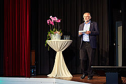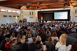 Christian Assmann, mayor of the university town, also took the opportunity to personally welcome the new students: “I’m delighted you’re all here and look forward to working together with you to make the university town of Geisenheim even more attractive for students. Please, get involved, integrate and become part of the life of the town.” His welcome address was followed by those of Peter Seyffardt, President of the Rheingau Winegrowers’ Association, and Roger Baumeister, Vice-President of the VEG – Geisenheim Alumni Association e.V. who, like the University President Prof. Dr. Hans Reiner Schultz, encouraged the new students to make use of the Geisenheim network with its 3000 alumni, over 1000 cooperating businesses and more than 140 partner institutions all over the world to find internships, organize stays abroad or simply to swap experiences.