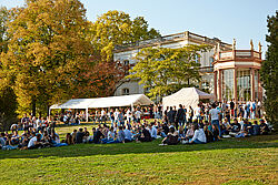 After the official welcome with simultaneous English translation for the international students the new students had the chance to discover what the campus had to offer: University Sports, the Studentenwerk Frankfurt, the Language Center and the AStA were only some of the groups and services that showcased themselves. In the afternoon members of staff from all sections of the university showed the new students around the campus. Taking in the FACE facility, the Beverage Technology Center and historical park landscapes, the tour ended up in Villa Monrepos where the students were treated to a Sekt reception organised by the VEG.