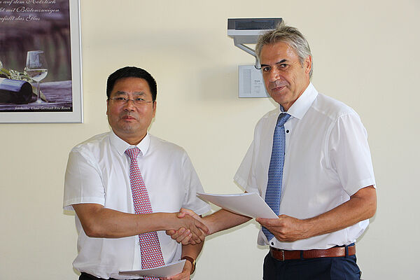 At the beginning of August 2018 Hochschule Geisenheim University played host to a high-ranking delegation from the Autonomous Region of Ningxia Hui, China. During the visit the General Director of the region’s Foreign Affairs Office, Kang Zhanping, and the President of Hochschule Geisenheim University, Prof. Dr. Hans Reiner Schultz, signed a letter of intent. In future, both parties want to expand the academic communication and cooperation between the university from the Rheingau and the higher education institutions of the Ningxia Region. The focus will be on the areas of viticulture, enology and wine business.