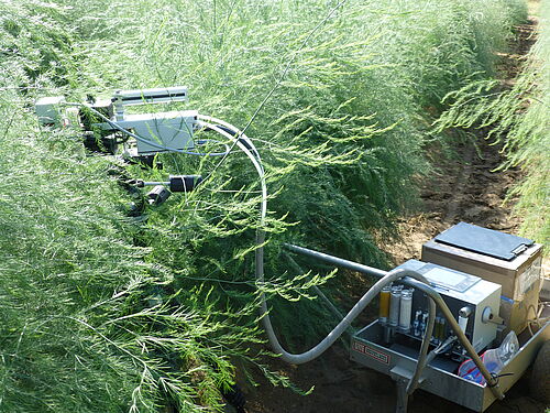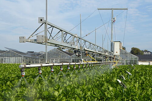 Gierhake irrigation trolley with Coldewey control system for individual irrigation of max. 160 plots