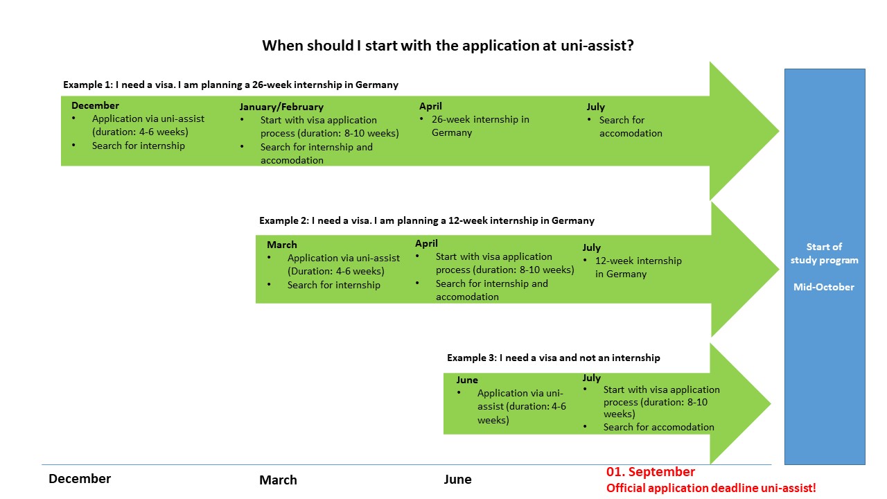 Important notice: With the confirmation from uni-assist that your application has been received and paid, you can already apply for a visa as an applicant for a university place at the embassy. Thus, you do not have to wait for a final response from uni-assist to start your visa process.