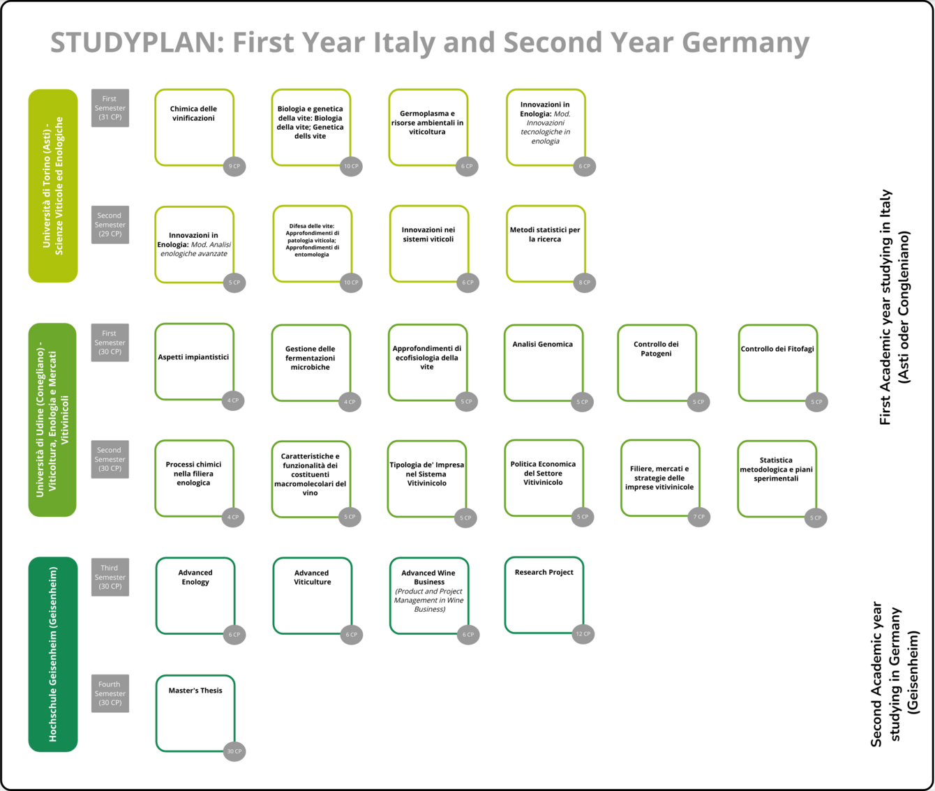 | Places of Study | In the first year in Conegliano (University of Udine) or Asti (University of Turin) and in the second year in Geisenheim |