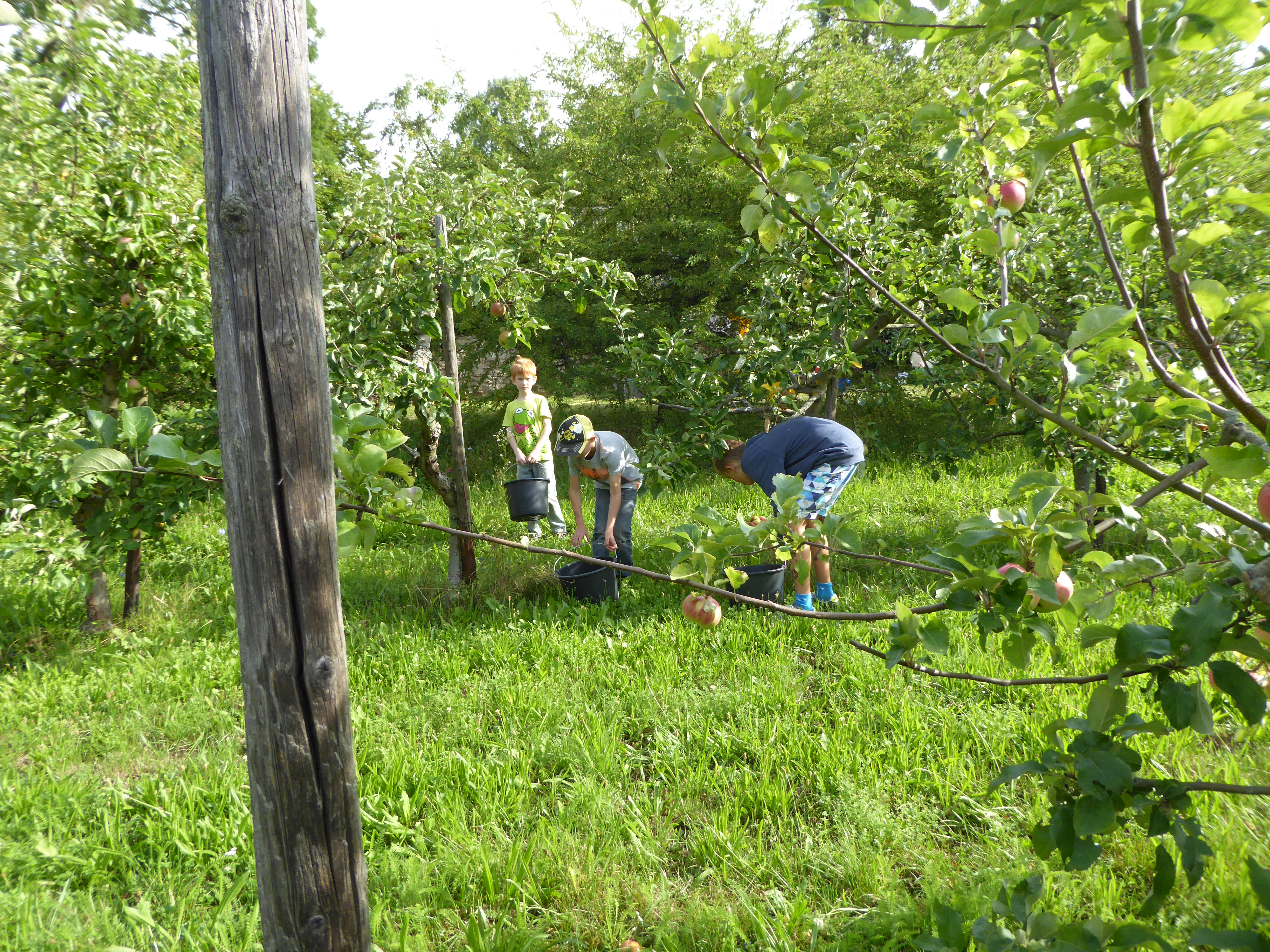 [Translate to English:] Kinder zwischen Apfelbäumen