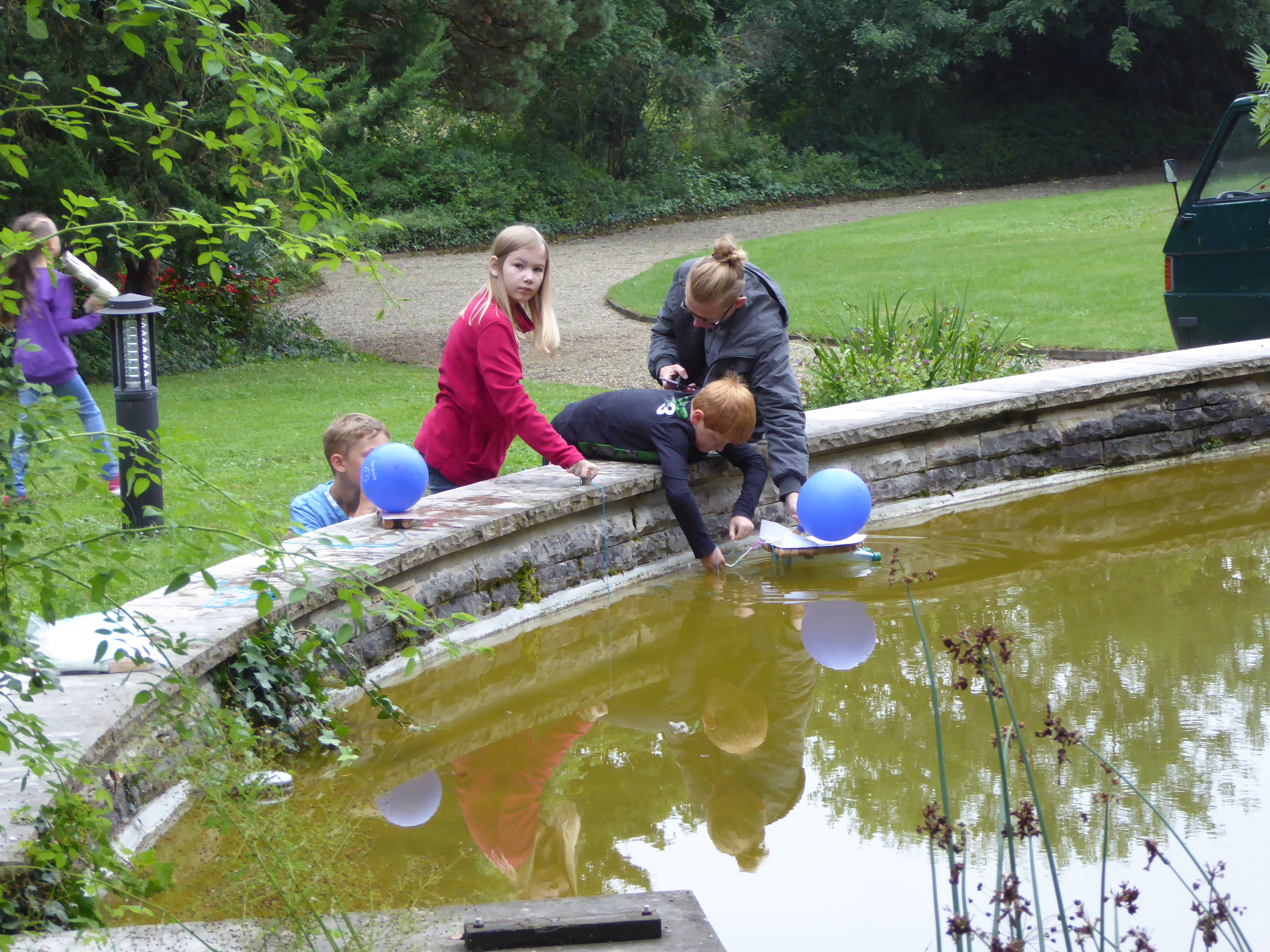 [Translate to English:] Kinder spielen mit Lufballonen am Teich