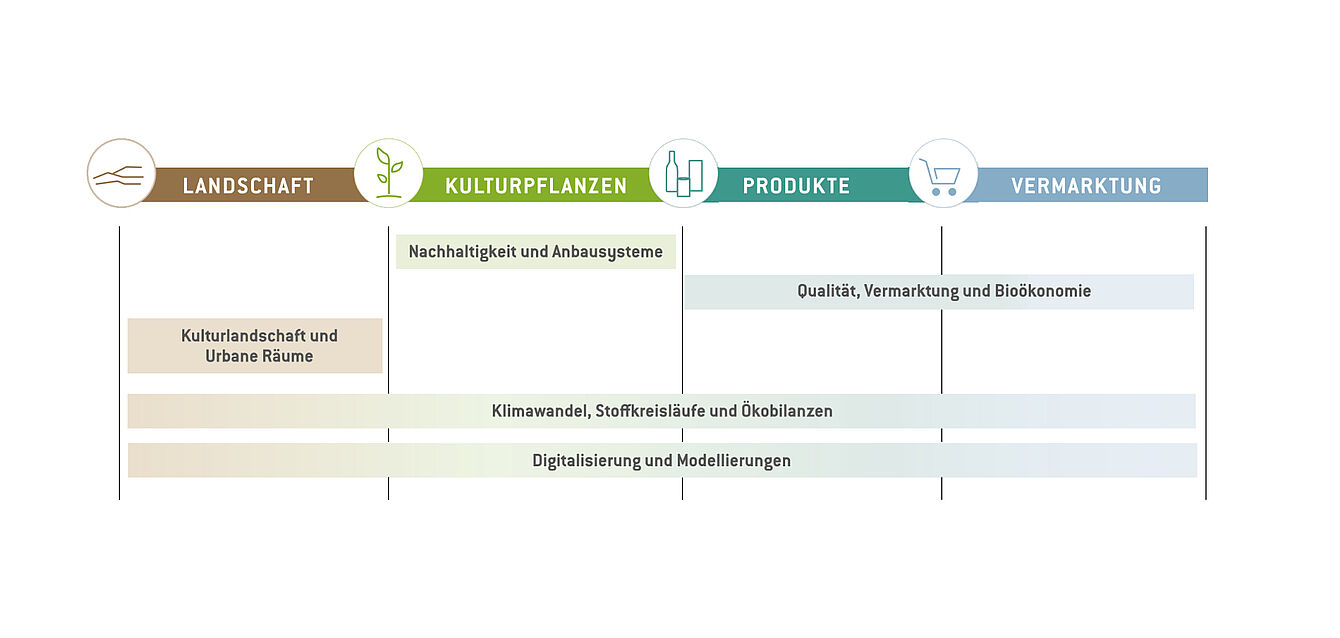 Wir entwickeln Lösungen für eine ressourcenschonende, innovative und zukunftsfähige Land- und Lebensmittelwirtschaft. Unsere Arbeit reicht von der Entwicklung klimaangepasster und ökologisch verträglicher Anbaustrategien für Sonderkulturen über die nachhaltige Verarbeitung und Vermarktung hochwertiger Erzeugnisse bis hin zur Gestaltung lebenswerter Kulturlandschaften und Stadtregionen. So verbinden wir Ökologie, Wirtschaftlichkeit und Lebensqualität – für eine nachhaltige Zukunft, die Natur und Gesellschaft in Einklang bringt.