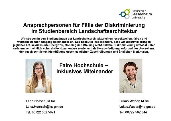 Solltet ihr Diskriminierung, Mobbing, sexualisierte Übergriffe oder andere Formen von Grenzüberschreitungen erleben oder beobachten, gibt es im Studienbereich feste Ansprechpersonen, an die ihr euch vertraulich wenden könnt.