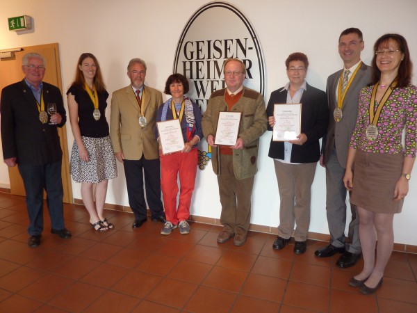 Folgende Winzer haben 28. März 2012 im Kulturtreff „Die Scheune“, dem Stammsitz der Geisenhei-mer Wein-Reimer, in Anwesenheit des Schirmherrn, Bürgermeister Frank Kilian, die Siegerurkunden der 6. Geisenheim Trophy von Oberreimer Herbert Heise, Zeremonienmeisterin Donate Krappe und Schreibmeisterin Michaela Eser erhalten. Von den Besuchern sind als „Mein Lieblingswein“ ge-wählt worden: