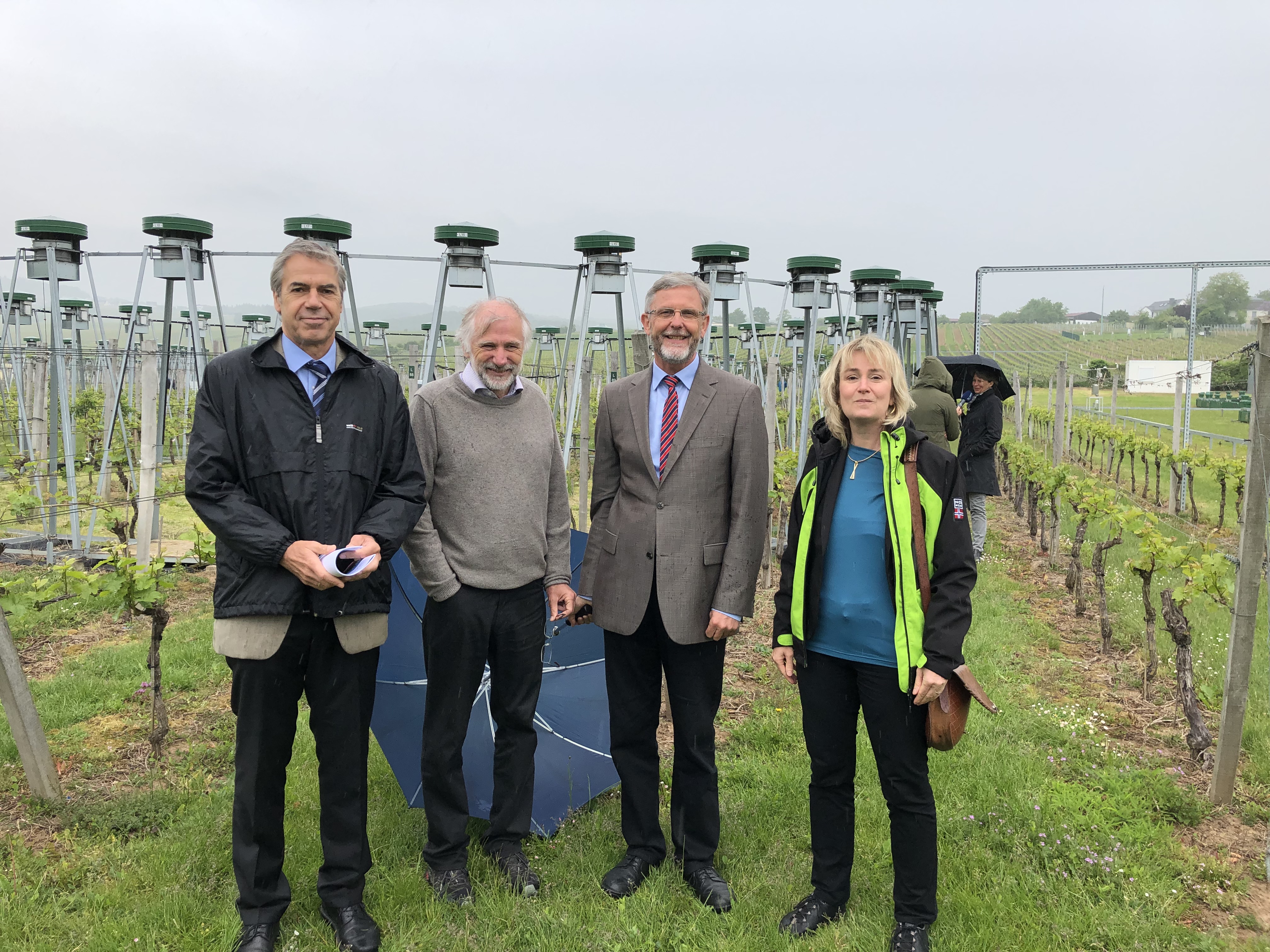 Mehr CO2 in der Luft, höhere Temperaturen, weniger Wasser – der Klimawandel bleibt nicht ohne Folgen für unsere Pflanzen, auch in der Landwirtschaft: Wie wachsen Gemüse und Wein unter den veränderten Bedingungen in Zukunft? Um Antworten auf diese Frage zu finden, arbeiten die Hochschule Geisenheim und das Hessische Landesamt für Naturschutz, Umwelt und Geologie (HLNUG) gemeinsam an einem einmaligen Projekt: In zwei so genannten „FACE-Anlagen“ („Free Air Carbon Dioxide Enrichment“) werden Reben und Gemüse im Freiland erhöhten Kohlendioxid-Konzentrationen ausgesetzt, wie sie Mitte dieses Jahrhunderts in unserer Umgebungsluft zu erwarten sind. Dabei werden die Reaktionen der Pflanzen und damit die Auswirkungen auf Qualität und Ertrag beobachtet. HLNUG-Präsident Prof. Dr. Thomas Schmid zeigt sich erfreut über die neue Kooperation: „Unter dem Einfluss des Klimawandels werden sich Ökosysteme verändern, das betrifft auch die Landwirtschaft und letztlich unsere Ernährungssicherheit. Das Projekt mit der Hochschule Geisenheim leistet hier einen wesentlichen Beitrag, denn nur anhand von fundierten Daten lassen sich kluge Anpassungsstrategien entwickeln.“ Prof. Dr. Hans Reiner Schultz, Präsident der Hochschule Geisenheim: „Das HLNUG ist schon viele Jahre ein kompetenter Partner in vielen Projekten gewesen. Die formale Kooperation ist auch ein Zeichen nach außen: Klimawandel ist nur gemeinsam in den Griff zu bekommen!“
