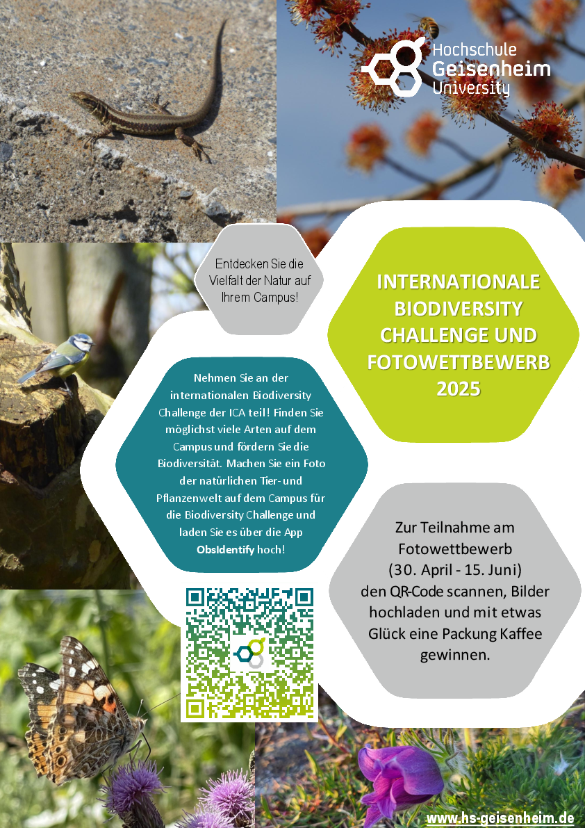 Mitmachen ist ganz einfach: Einfach die kostenlose App ObsIdentify nutzen, dort Ihre Naturbeobachtungen hochladen – und schon sind Sie Teil der internationalen Biodiversity Challenge! Für den begleitenden Fotowettbewerb vom 30. April bis 15. Juni 2025 genügt es, ein beeindruckendes Bild der natürlichen Tier- und Pflanzenwelt auf dem Campus hochzuladen.