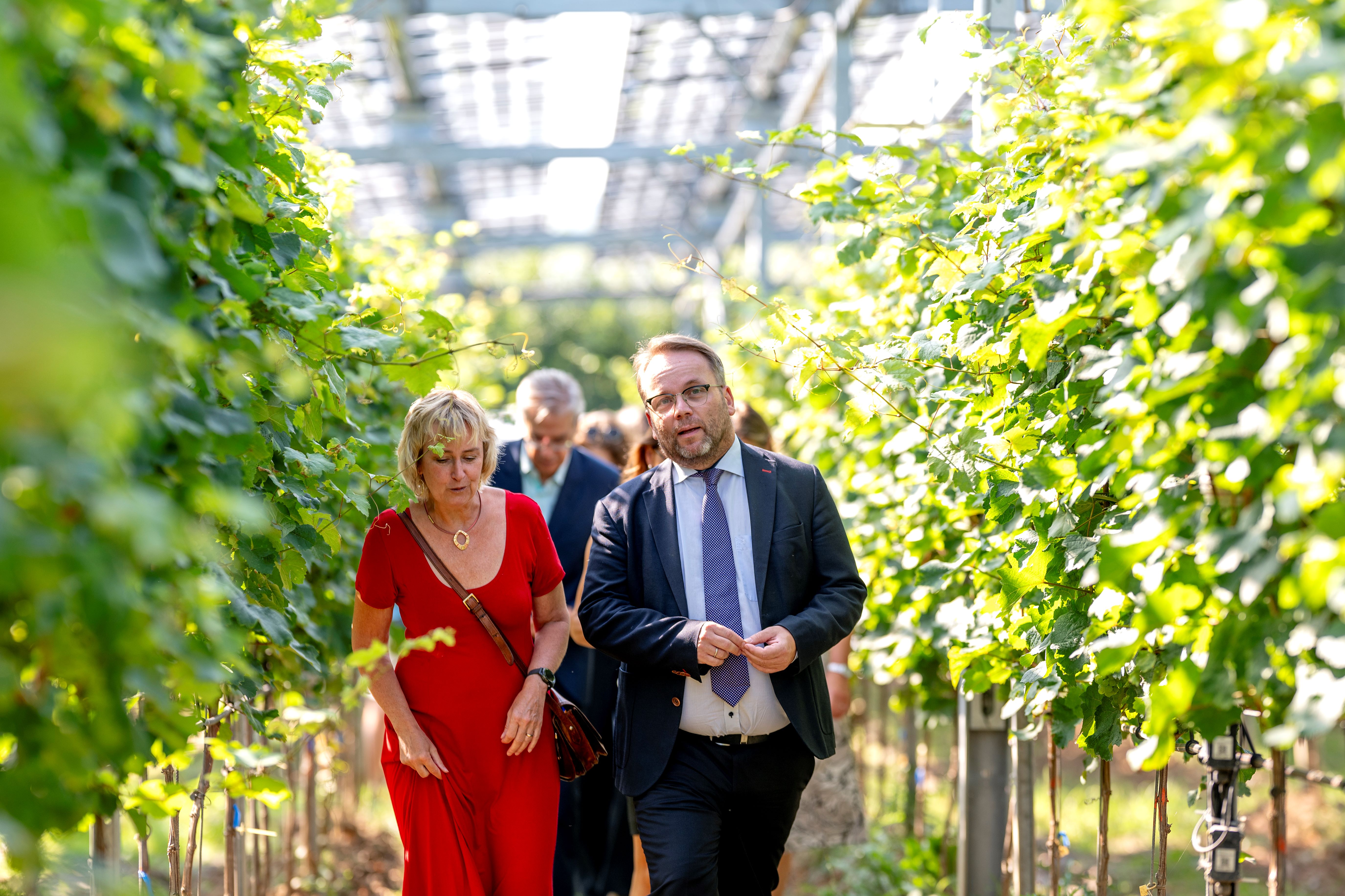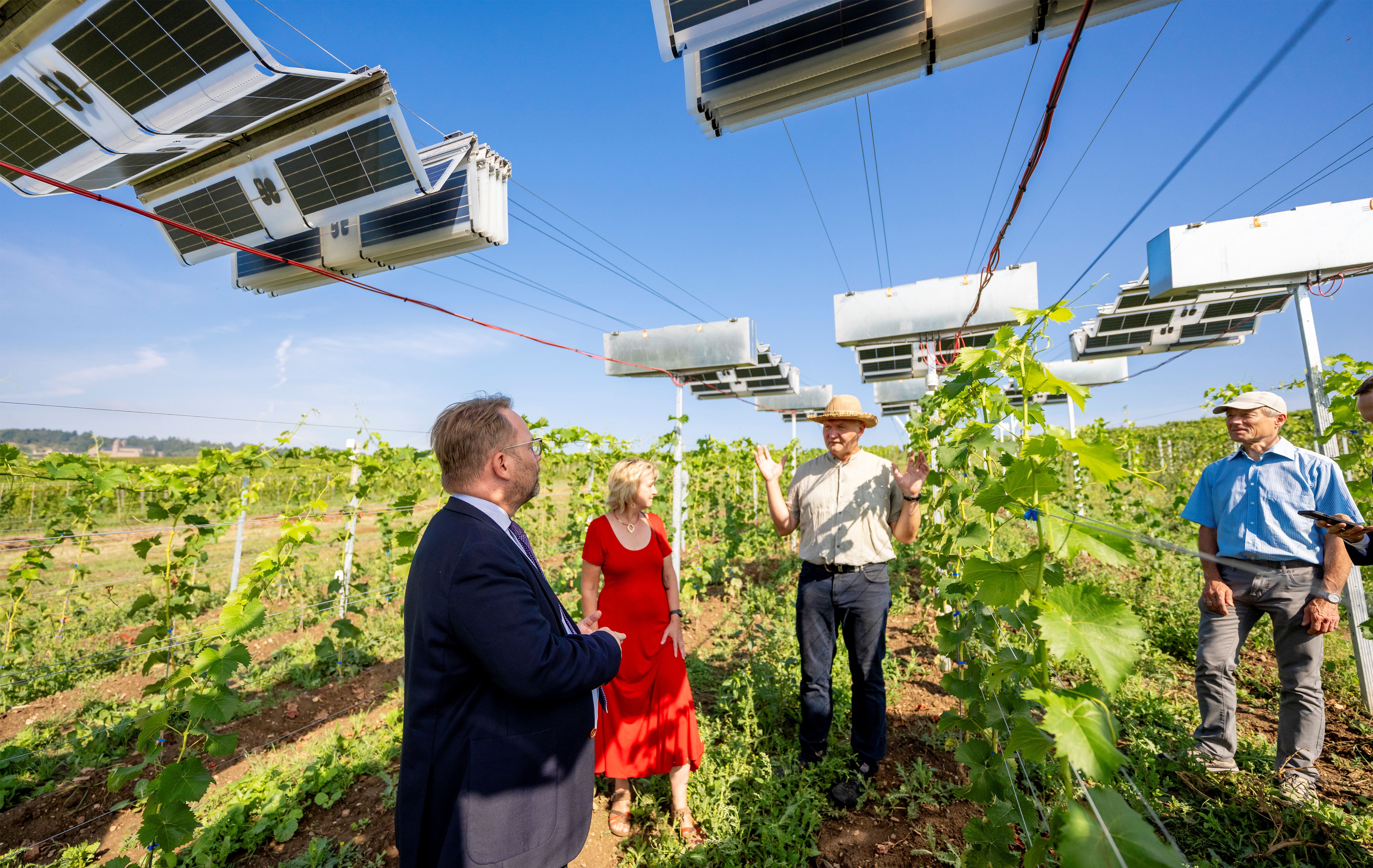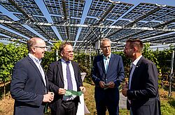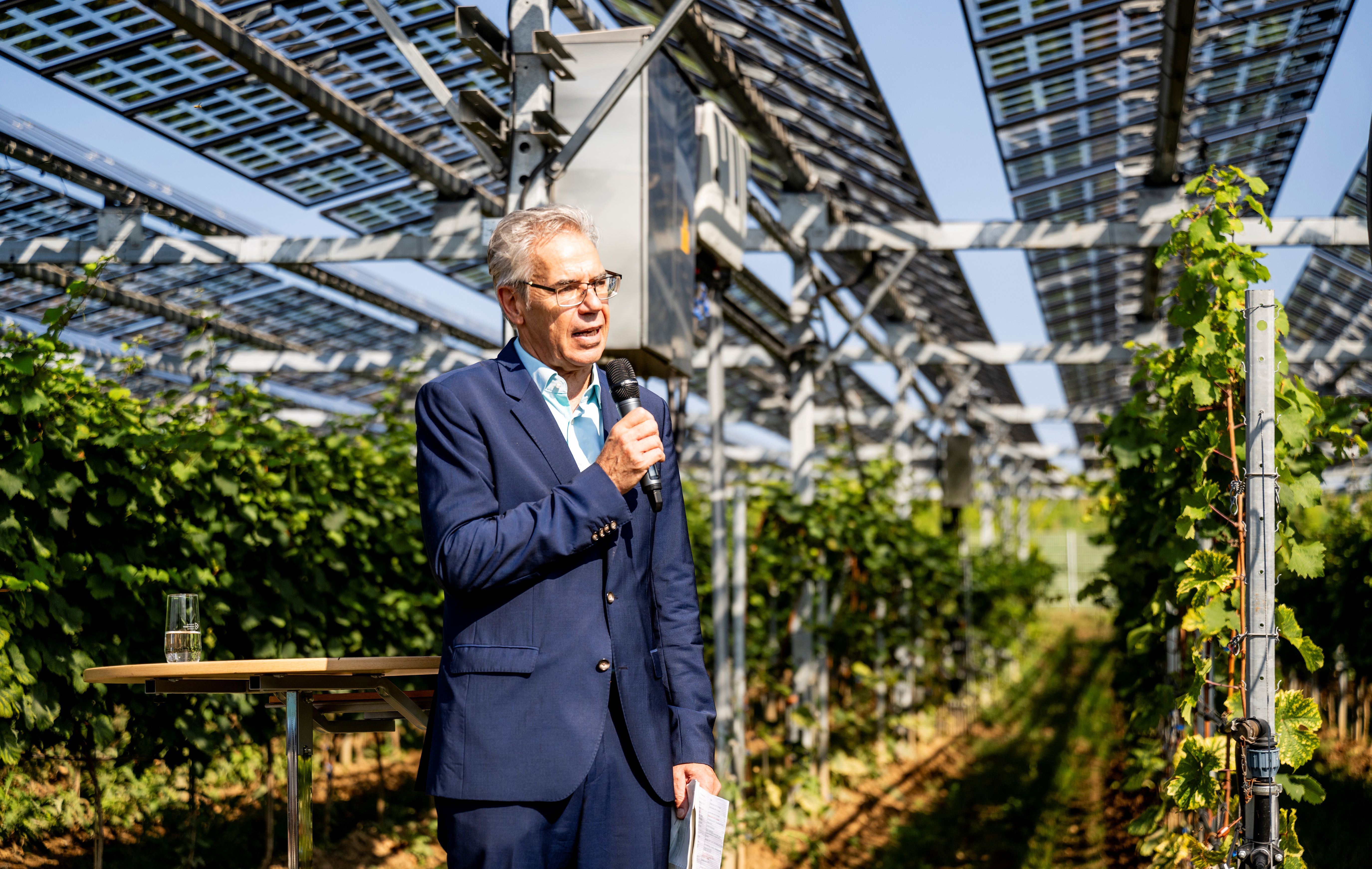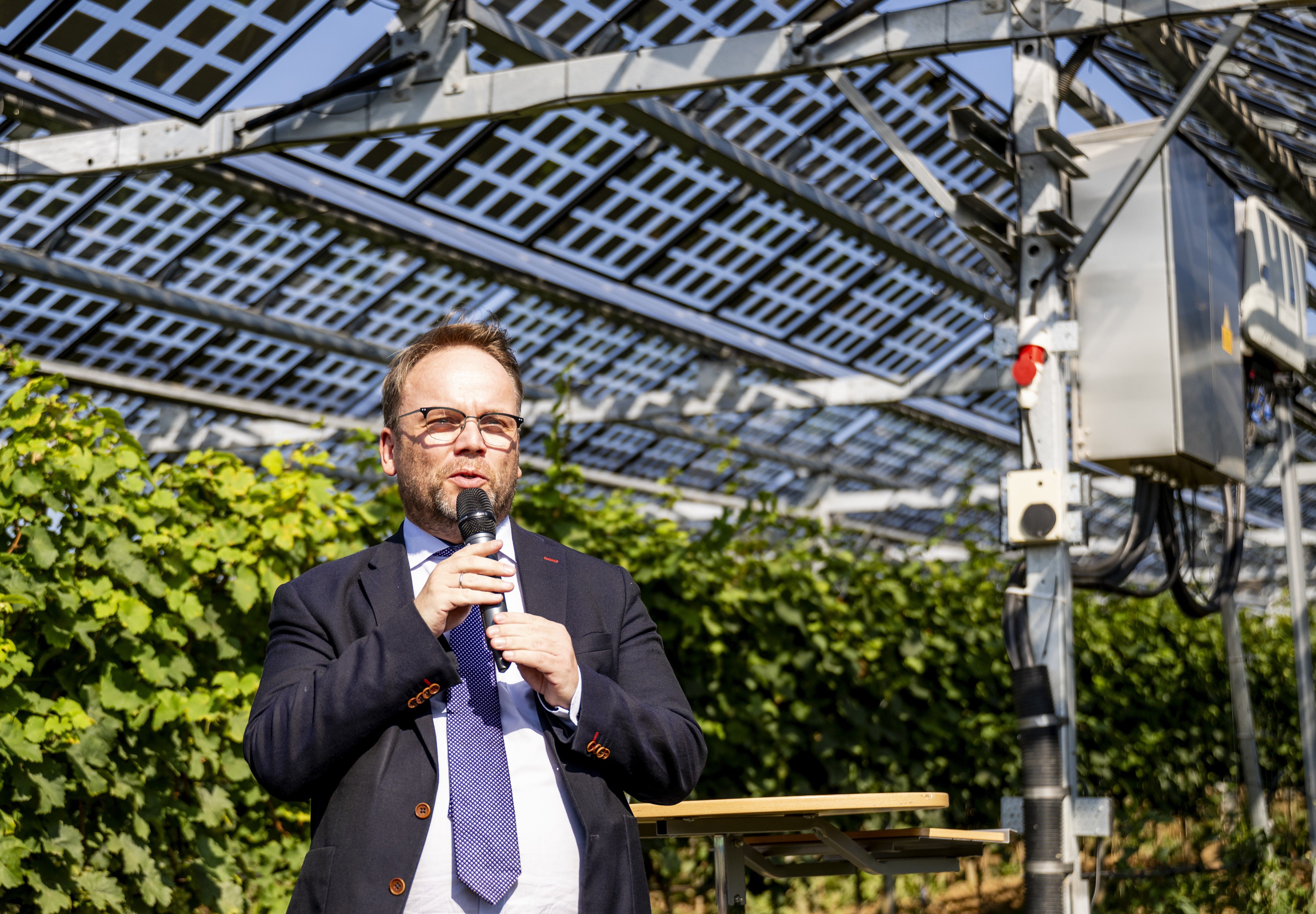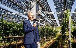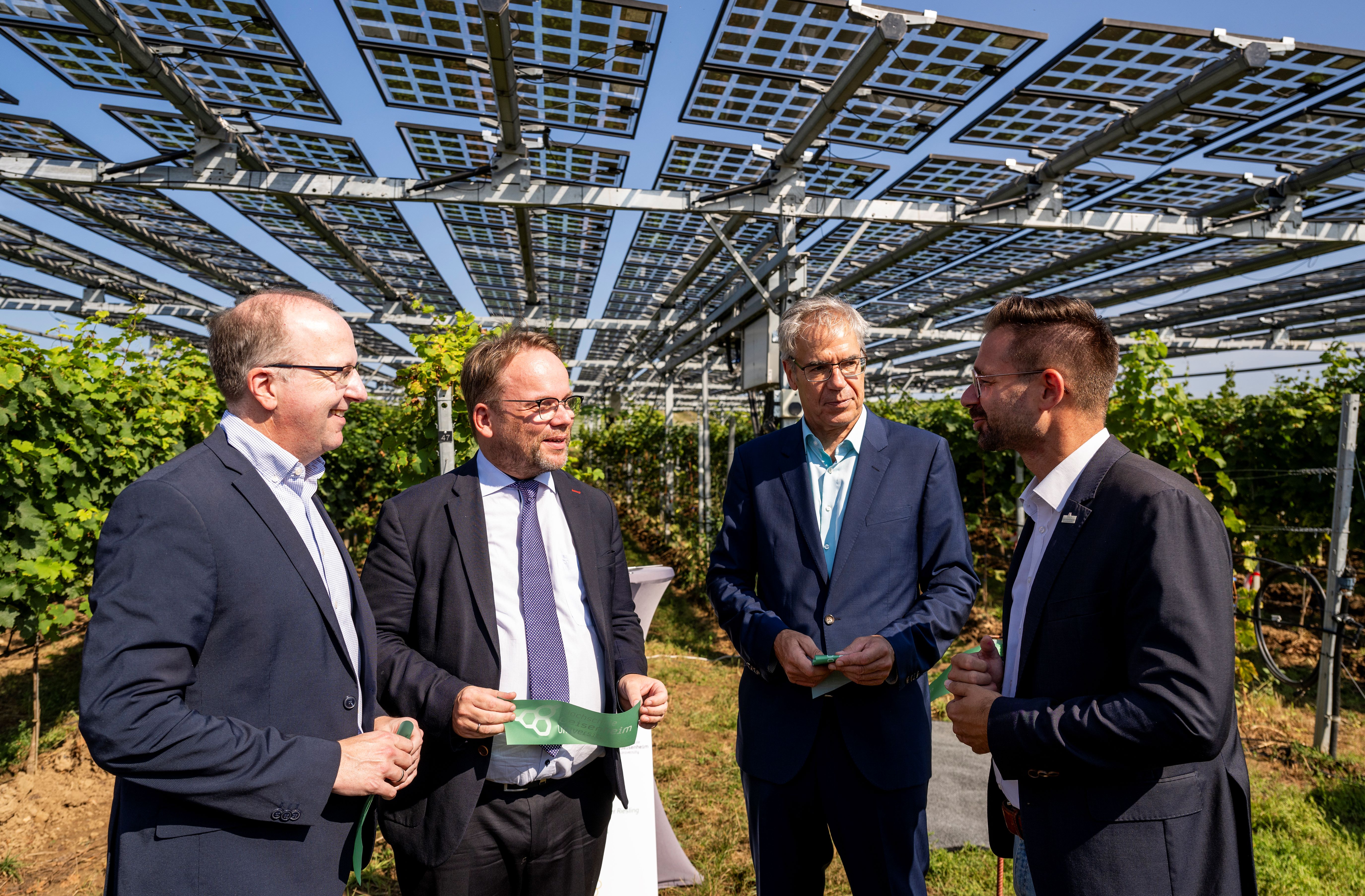 Oben grüner Strom, unten weißer Riesling – Wissenschaftsminister Gremmels besucht Hochschule Geisenheim und weiht Forschungsplattform für Agri-Photovoltaic ein