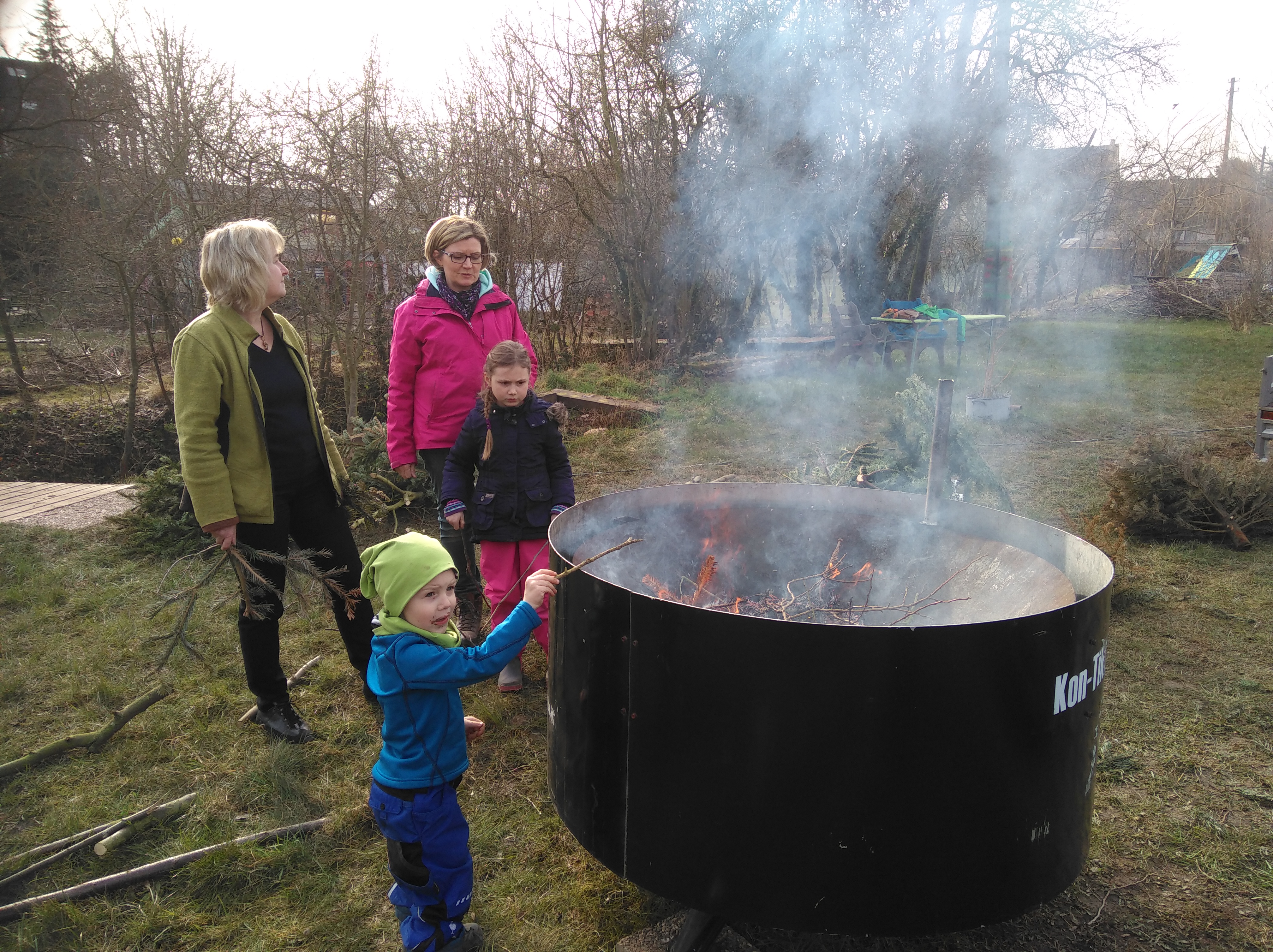 Unter Anleitung der Professorin für Klimafolgenforschung Prof. Dr. Claudia Kammann und ihres Mitarbeiters Georg Ardissone der Hochschule Geisenheim konnten Kinder auf der Kinder- und Jugendfarm in Oestrich-Winkel am 6. März 2018 alte Weihnachtsbäume und Schnittholz zu Pflanzenkohle verarbeiten. Die Kinder schritten tatkräftig mit Scheren zu Werk und verkohlten innerhalb von drei Stunden acht Weihnachtsbäume. Highlight war das Ablöschen der Kohle am Ende. Die Kohle kommt nun drei Monate in den Hühnerstall und den Kompost der Farm, wo sie Mineralien und Nährstoffe aufnehmen kann. Anschließend wird sie als organischer Karbondünger in den Gemüsebeeten der Farm verwendet und bei der Pflanzung in der Wurzelzone platziert.