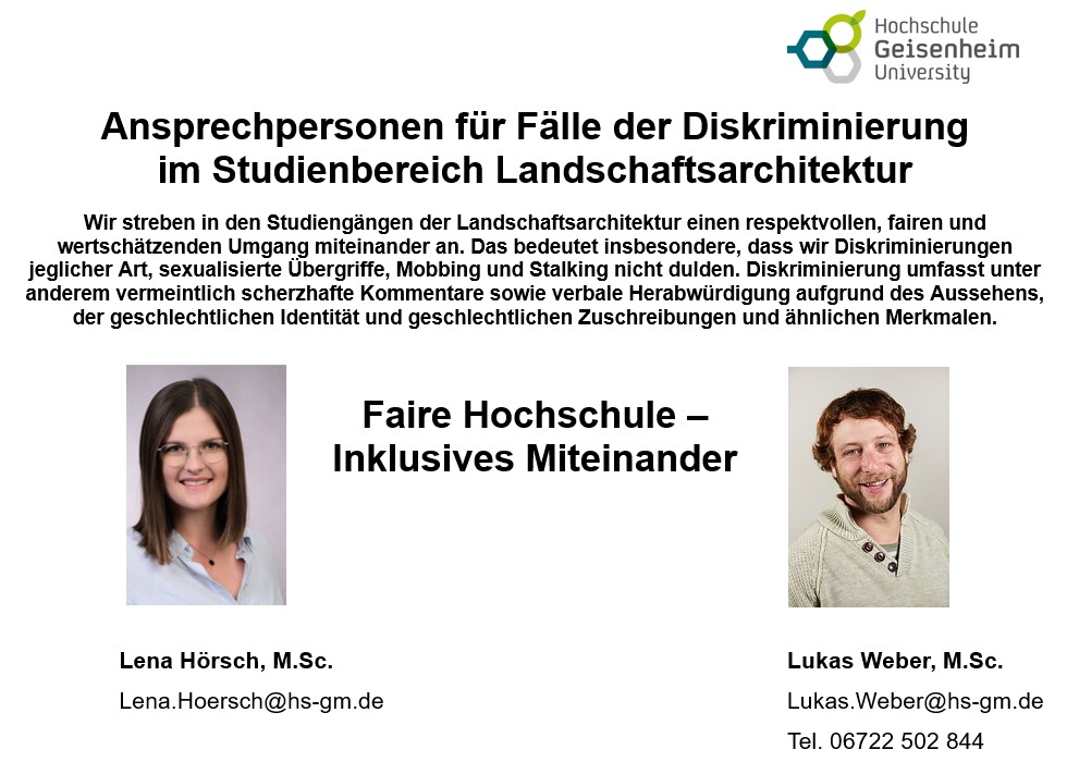 Ansprechpersonen für Fälle der Diskriminierung im Studienbereich Landschaftsarchitektur