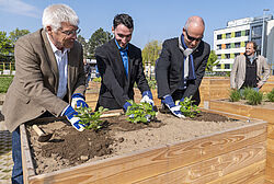 Der Geschäftsführer des Landesbetriebs LBB Holger Basten dankte allen Beteiligten am Projekt Campusgarten für die gute Zusammenarbeit: „Heute können wir das überzeugende Ergebnis eines qualitätsvollen Entwurfes in der Verbindung mit einer schlüssigen und konsequenten Realisierung sehen – und das für einen Garten passend zum Frühling. Der Projekterfolg ist auch das Ergebnis einer sehr kooperativen Zusammenarbeit zwischen dem LBB-Projektteam unserer Niederlassung Mainz, der JGU, des Studierendenwerks Mainz und der Hochschule Geisenheim, beginnend mit einem studentischen Ideenwettbewerb und dem ausgewählten Entwurf von Herrn Renne. Hierfür bedanke ich mich bei allen Mitwirkenden. Auch für die zukünftigen Projekte auf dem Campus – ob klein der groß – ist qualitätsvolle Architektur unverzichtbar.“
