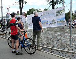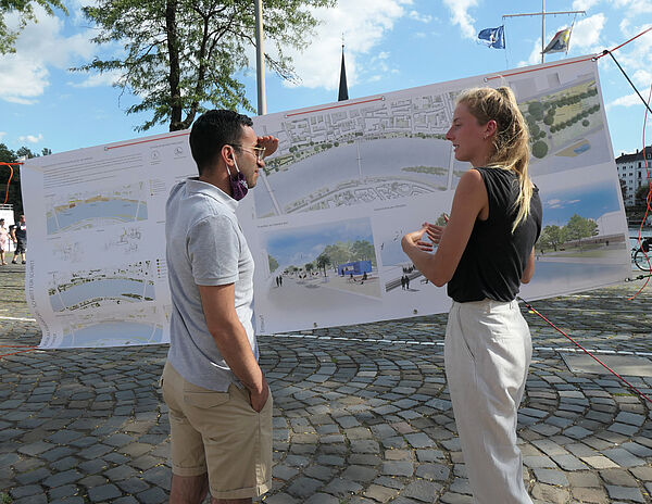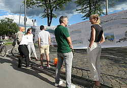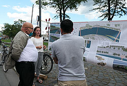 Anregungen lieferten dabei auch Anna Patscheider und Veronica Eder, Bachelor-Absolventinnen der Landschaftsarchitektur an der Hochschule Geisenheim. In ihrer Thesis hatten sie innovative Ideen zur Gestaltung des Areals entwickelt. Diese präsentierten sie zahlreichen interessierten Bürgerinnen und Bürgern ebenso wie dem Frankfurter Planungsdezernenten Mike Josef und dem Verkehrsdezernenten Klaus Oesterling.