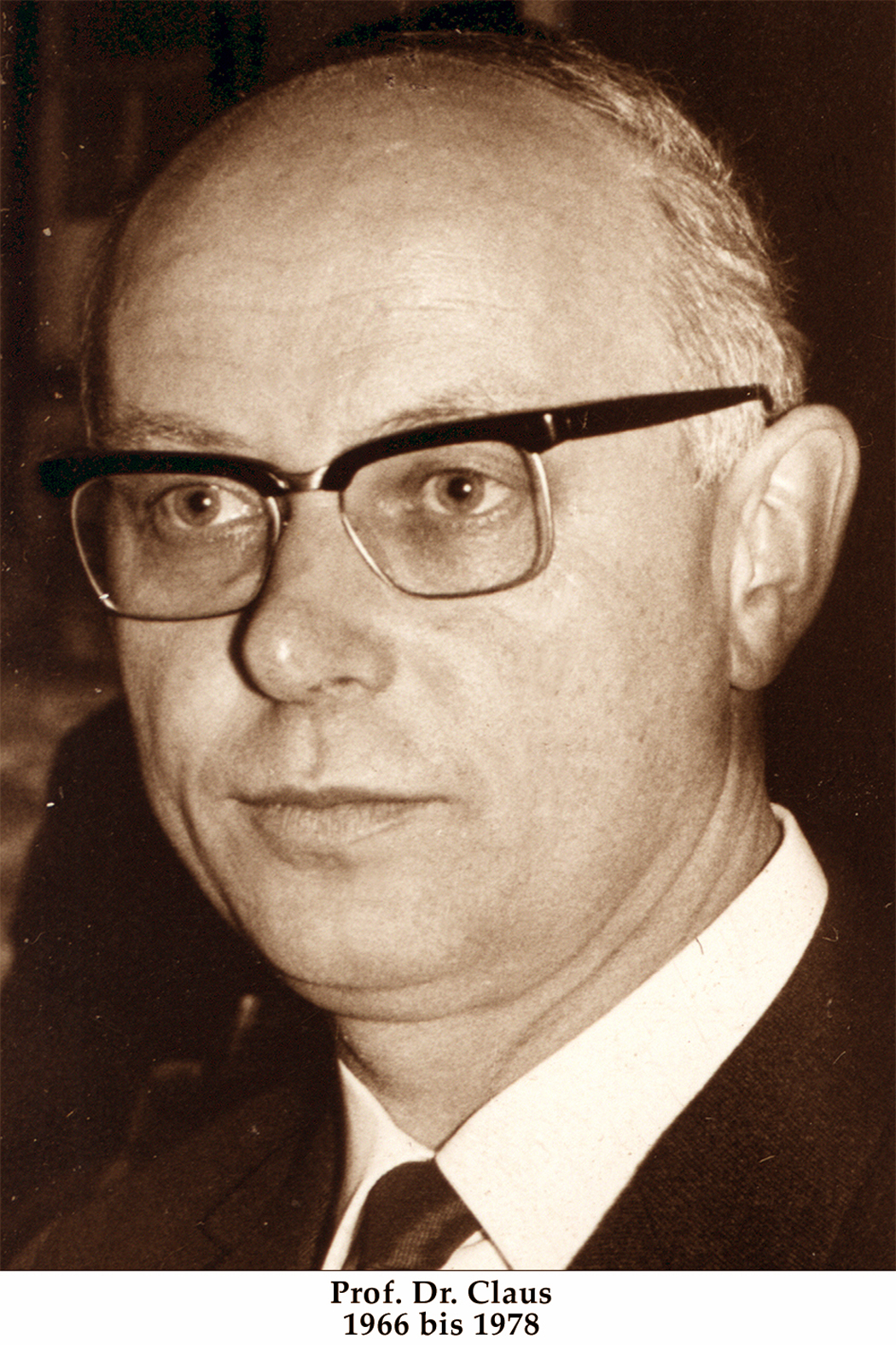 1920 in Niederorschel, Eichsfeld, als Sohn einer Bauernfamilie geboren, arbeitete der promovierte Agrarwissenschaftler in den 50er Jahren in der landwirtschaftlichen Abteilung der BASF und später als Leiter der dortigen Weinberatungsstelle. Am 14. März 1966 übernahm er das Amt des Direktors der Hessischen Lehr- und Forschungsanstalt, wie sie noch bis 1971 heißen sollte. Seine erste Amtszeit dauerte bis 1972, ihr folgte eine weitere bis 1978. In den ersten Jahren seines Handelns kam es 1967 zur Fertigstellung des neuen Institutsgebäudes für die Bereiche Gemüsebau, Zierpflanzenbau und Botanik sowie zu einer Neugliederung der gesamten Institutsstruktur der Forschungsanstalt. Ab 1968 dominierten die sog. Fachhochschulgesetze und deren Umsetzung die Arbeit von Prof. Dr. Claus, die letztlich formal die Trennung von Forschung und Lehre am Standort Geisenheim auslösten und viele Zukunftsfragen des Standorts aufwarfen. Er vertrat den Standpunkt, dass am Standort Geisenheim eine eigenständige Hochschule entstehen solle, was dann aber nicht gelang. Der Lehrbereich wurde an die damalige Fachhochschule Wiesbaden ausgegliedert und die Forschungsanstalt gegründet. Gleichzeitig stellte der Wissenschaftsrat die Forschung in Geisenheim in Frage. „Prof. Dr. Claus mobilisierte alle damaligen Institutsleitungen und erstellte eine umfangreiche Dokumentation der Geisenheimer Arbeiten und schließlich lenkte der Wissenschaftsrat ein. Dazu gehörte vor allem Beharrlichkeit und Ausdauer, ansonsten wäre die Entwicklung ganz anders gelaufen“, so Prof. Dr. Hans Reiner Schultz, Präsident der Hochschule Geisenheim. Von 1979 bis 1983 leitete er bis zu seiner vorgezogenen Pensionierung das Fachreferat "Schadstoffe in der Nahrungskette" im hessischen Umweltministerium. 1968 war er Initiator der Rheingauer Weinseminare und 1971 Mitbegründer des Rheingauer Weinkonvents. Das Wirken von Prof. Dr. Claus hat sich in einem umfassenden Schrifttum von mehr als 200 Veröffentlichungen niedergeschlagen.