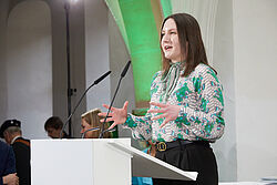 Im feierlichen Ambiente im Laiendormitorium zu Kloster Eberbach verabschiedete die Hochschule Geisenheim zum Abschluss des Semesters 138 Absolvierende, davon 62 Frauen. Insgesamt freuten sich 109 von ihnen über ihr Bachelorzeugnis und 29 hatten ihr Masterstudium erfolgreich abgeschlossen. Die Veranstaltung wurde außerdem gestreamt, sodass auch alle Freunde und Bekannte der Absolvierenden deren Übergang in ein neues Leben mitverfolgen konnten. Die beiden Redner, Prof. Dr. Hans Reiner Schultz, Präsident der Hochschule Geisenheim und Dipl.-Ing. (FH) Robert Lönarz, Präsident der VEG – Geisenheim Alumni Association e. V., betonten die internationale Geisenheimer Gemeinschaft und warben dafür, auch künftig das Geisenheimer Netzwerk zu stärken. Mit emotionalen Worten ließen auch die redenden Absolvierenden aller Studienbereiche ihre einmalige Zeit am familiären Campus Revue passieren.