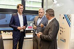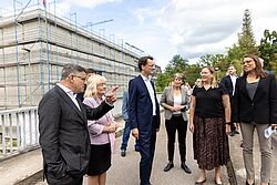 Am gestrigen Mittwoch, 13. September 2023, besuchten Hessens Ministerpräsident Boris Rhein und sein Nordrhein-Westfälischer Amtskollege Hendrik Wüst die Hochschule Geisenheim. Bei Vizepräsidentin Lehre Prof. Dr. Mirjam Hey, Kanzlerin Marion Waldeck und Vizepräsidentin Forschung Prof. Dr. Annette Reineke informierten sie sich über Forschungsschwerpunkte – insbesondere im Bereich der Sonderkulturen –, Bauvorhaben und Studienangebote. Rhein bezeichnete die Hochschule als „Aushängeschild für die Spitzenforschung in Hessen“, Wüst nannte sie „Vorreiter beim nachhaltigen Wein- und Gartenbau“.