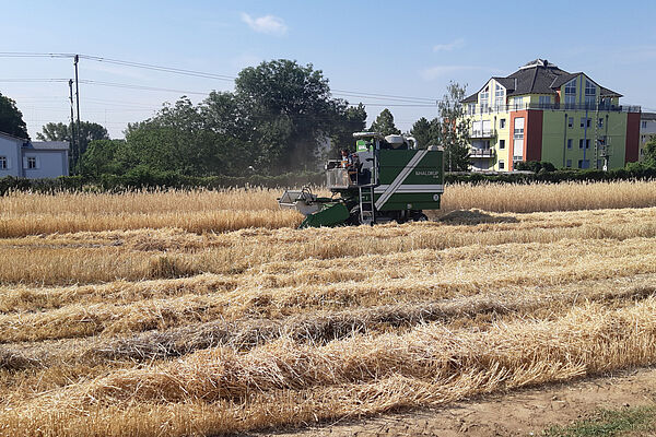 Um das Getreide auch während der Wachstumsphase begleiten zu können, wurden am Standort Geisenheim in einem Streifenversuch die Getreide in den Jahren 2021 und 2022 angebaut. Die guten Witterungsbedingungen im Jahr 2022 ermöglichten, dass das Getreide bereits mit einem kleinen Parzellenmähdrescher geerntet werden konnte. Nun gilt es auch die neue Ernte zu analysieren.