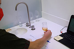 Im Rahmen des dreijährigen EIP geförderten Forschungsprojektes „Nachhaltige Fruchtfolgeerweiterung durch Sommergetreide in wassersensiblen Gebieten am Beispiel alter Getreidesorten für das Back- und Brauhandwerk“ – kurz gesagt: korn B – prüft die Hochschule Geisenheim am Institut für Lebensmittelsicherheit, wie gut sich die Getreide alter Herkünfte verarbeiten lassen. Dazu werden Mälzungsversuche im Kleinmaßstab durchgeführt. Im nächsten Schritt wird Bier daraus hergestellt, welches aktuell sensorisch beschrieben und von Konsumenten hedonisch bewertet wird.