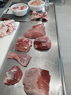 Anhand der verschiedenen Fleischstücke lernen die Studierenden mehr über deren Verwendung. © Dr. Eva Spindler-Raffel
