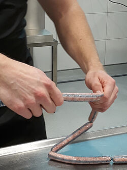 Jetzt noch trocknen: Die Rohwurst der Studierenden. © Dr. Eva Spindler-Raffel