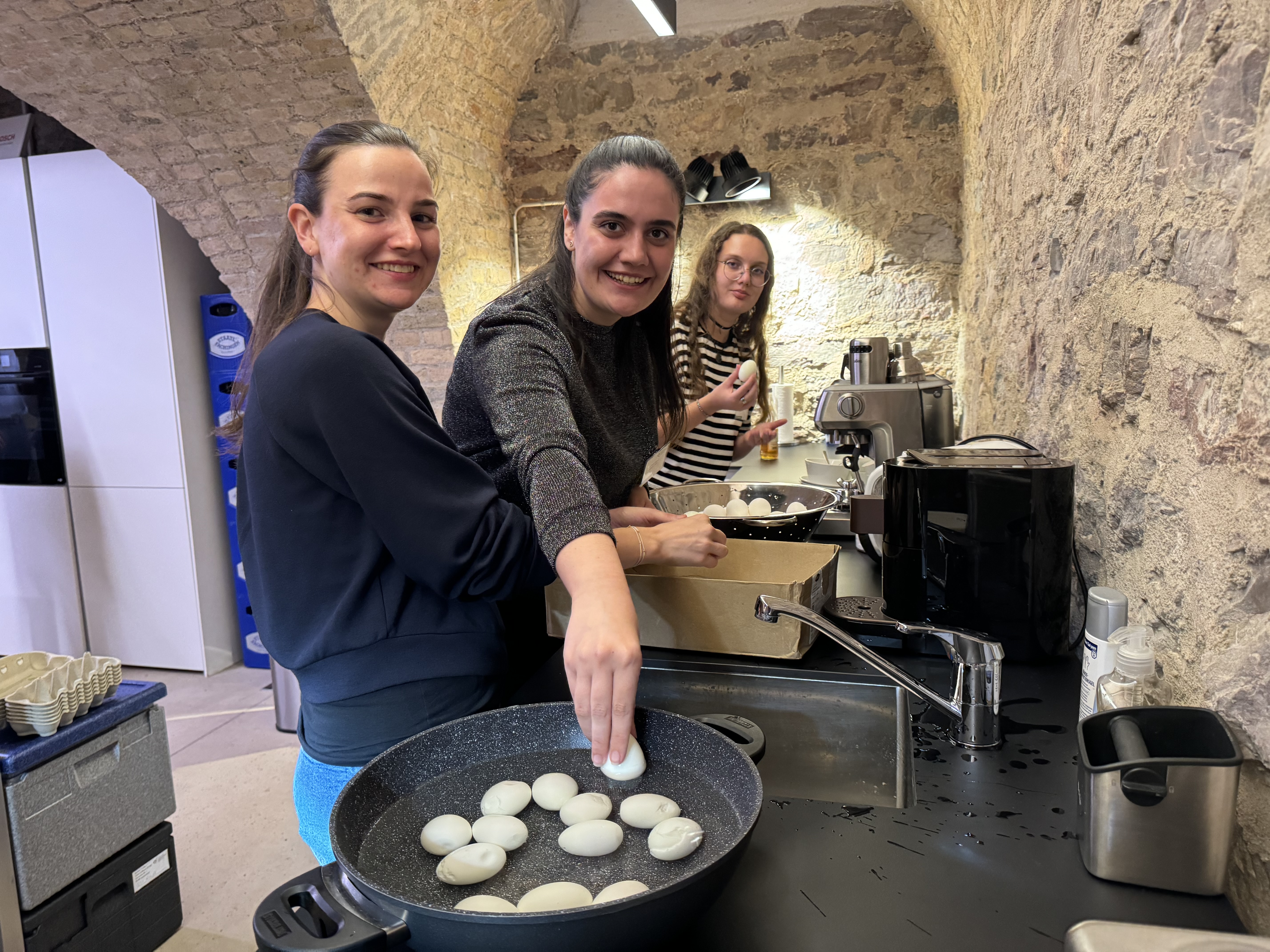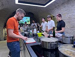 Nach einem virtuellen Auftakt trafen sich die insgesamt 19 Studierenden und Fachkolleg:innen der verschiedenen Partnerhochschulen eine Woche lang in Geisenheim. Auf dem Programm standen neben fachlichen Vorträgen von Dozierenden aus den teilnehmenden Nationen auch etliche Praxispunkte. Bei der Herstellung von Nudeln, Pflanzenölen und alkoholfreiem Bier konnten die Studierenden ihr theoretisches Wissen direkt in der Praxis erproben. Auch die Frankfurter Grüne Soße durfte dabei natürlich nicht fehlen. Direkt am Montagabend konnten sich die Studierenden beim Get-Together im Uni-Keller der Hochschule Geisenheim an der hessischen Regionalspeise versuchen – Verkostung inklusive.