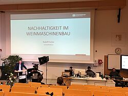 Der Klimawandel gilt als eine der größten Herausforderungen des 21. Jahrhunderts, die weltweit tiefgreifende wirtschaftliche und soziale Umwälzungen hervorruft. Auswirkungen auf unsere Gesundheit und auf die Ökosysteme sind jetzt schon spürbar, wie beispielsweise die Hitzewellen und langen Trockenperioden in den letzten Jahren verdeutlicht haben. Anfang November haben Wissenschaftler von der NASA und des Potsdamer Instituts für Klimafolgenforschung (PIK) festgestellt, dass die tiefgreifenden Veränderungen für die Landwirtschaft bereits innerhalb der nächsten Dekade deutlich spürbar werden und nicht erst in ferner Zukunft. Unter dem Strich sinken die Flächen weltweit, auf denen Ackerbau – und auch Weinbau – betrieben werden kann. Die Weinbranche wird von der globalen Erwärmung nicht nur empfindlich getroffen, sie trägt durch ihren Verbrauch an Energie und Materialien selbst zum Klimawandel bei. Dadurch haben Betriebe der Weinbranche die Möglichkeit, vielleicht auch die Verpflichtung, selbst zu handeln und zur Eindämmung des Klimawandels aktiv beizutragen. Das Bewusstsein wächst, das die Notwendigkeit besteht, effektiv Klimaschutz zu betreiben, um die zukünftigen Lebensgrundlagen zu erhalten. Klimafreundliches Handeln wird daher von Kunden und Geschäftspartnern zunehmend geschätzt. In diesem Vortrag ging es um die drei wichtigsten Maßnahmen, die in der Weinbranche gegen den Klimawandel unternommen werden können. Die wichtigste Klimaschutzmaßnahme betrifft die Verpackung. Die traditionelle Glasflasche ist der größte einzelne Posten in der Emissionsbilanz von Wein. Eine wesentliche Verbesserung kann entweder durch Bag-in-Box oder durch ein Mehrweg-System für Glasflaschen erreicht werden. Die Leichtglasflasche ist zwar eine echte Verbesserung, reicht aber nicht aus, um die Klimaschutzziele mittelfristig zu erreichen. Bis 2045 wird Deutschland klimaneutral sein, weshalb alle Möglichkeiten zur Kreislaufwirtschaft genutzt werden müssen. Die zweite elementare Maßnahme betrifft die Dekarbonisierung der Energieträger: Diesel, Benzin, Heizöl und Erdgas müssen durch klimafreundliche Alternativen ersetzt werden und natürlich effizient verwendet werden. Die wichtigsten Energieträger der Zukunft sind Strom aus Erneuerbaren Energien und Wasserstoff. Die dritte Maßnahme betrifft Ressourceneffizienz im Weinberg. Neben einer Vielzahl von Einzelmaßnahmen ist es vor allem wichtig, das Kontingent der Erntemengen auszuschöpfen: Je mehr Weintrauben geerntet werden, desto geringer ist in unserem Weinbausystem der CO2-Fußabdruck durch diese Wertschöpfungsstufe je Flasche Wein. In Anbetracht der Herausforderungen, die das 21. Jahrhundert stellt, ist die Weinbranche heute dazu aufgerufen, in einem neuen Umfang über die einzelnen Arbeits- und Interessengruppen hinweg zusammenzuarbeiten und gemeinsam Lösungen zu erarbeiten.
