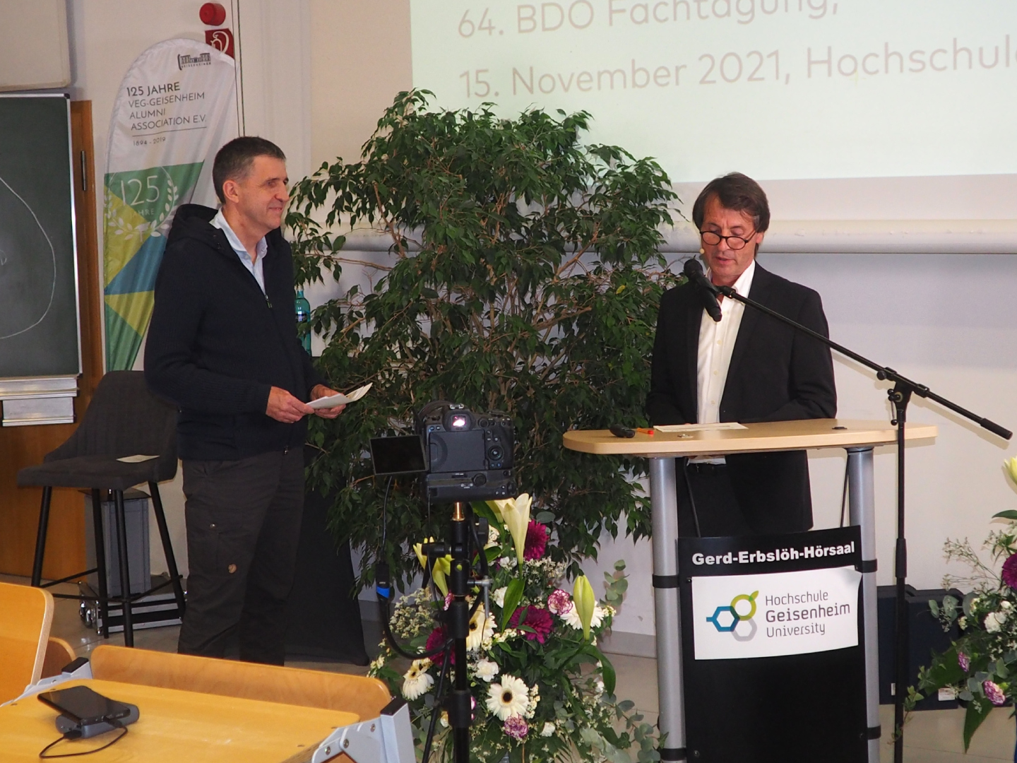 Nachdem die letztjährige BDO-Fachtagung wegen der Corona-Pandemie nur online abgehalten werden konnte, war es dieses Jahr möglich, die 64. BDO-Fachtagung, die wieder in Geisenheim stattfand, im Hybridformat ablaufen zu lassen, sowohl in Präsenz, als auch online. Um die Hygieneregeln einhalten zu können, durfte nur eine bestimmte Anzahl von Tagungsgästen im Gerd-Erbslöh-Hörsaal anwesend sein. Daraus ergab sich, dass die meisten der Teilnehmenden online der Tagung zugeschaltet waren.