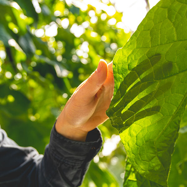Eine junge Frau und ein junger Mann stehen in einem Gewächshaus auf den zwei Seiten einer begrünten Wand. © Hessen schafft Wissen – Steffen Böttcher