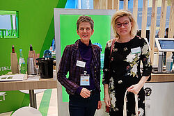 Lutz van Elk, Referent des BMEL im Referat 414; Wein, Bier, Getränkewirtschaft, und Simone Lau (l.), Staatliche Weinsachverständige/Weinkontrolleurin des Landes Berlin, am Stand.