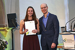 Geehrt wurden auch die erste Absolventin und der erste Absolvent des Studiengangs Lebensmittelsicherheit, Lea Unvericht und Nils Dächert. Die Peter Romeis-Stiftung ehrte sie mit einem Preis für ihre Bachelor-Thesen. Lea Unvericht widmete sich dem Thema „Umsetzung eines Food Fraud-Prevention-Systems in einem mittelständischen Unternehmen“, ihr Kommilitone der „Erstellung eines HACCP-Konzepts für Honig“. Die Stiftung, deren Zweck die Förderung der Bildung und Ausbildung sowie von Wissenschaft und Forschung im Bereich Brau-, Getränke- und Lebensmitteltechnologie ist, bedachte beide mit Buchpreisen und Seminareinladungen.